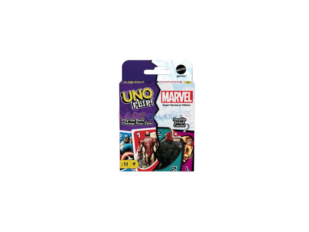 Zažijte ještě napínavější partii oblíbené karetní hry UNO FLIP! s hrdiny z Marvel univerza . Tato speciální edice přináší vzrušující zvraty – dvě strany karet s různými efekty a ikonickými postavami, jako jsou Iron Man, Spider-Man, Hulk a další Avengers . Zvolíte světlou stranu, nebo risknete temnou variantu se silnějšími akcemi?