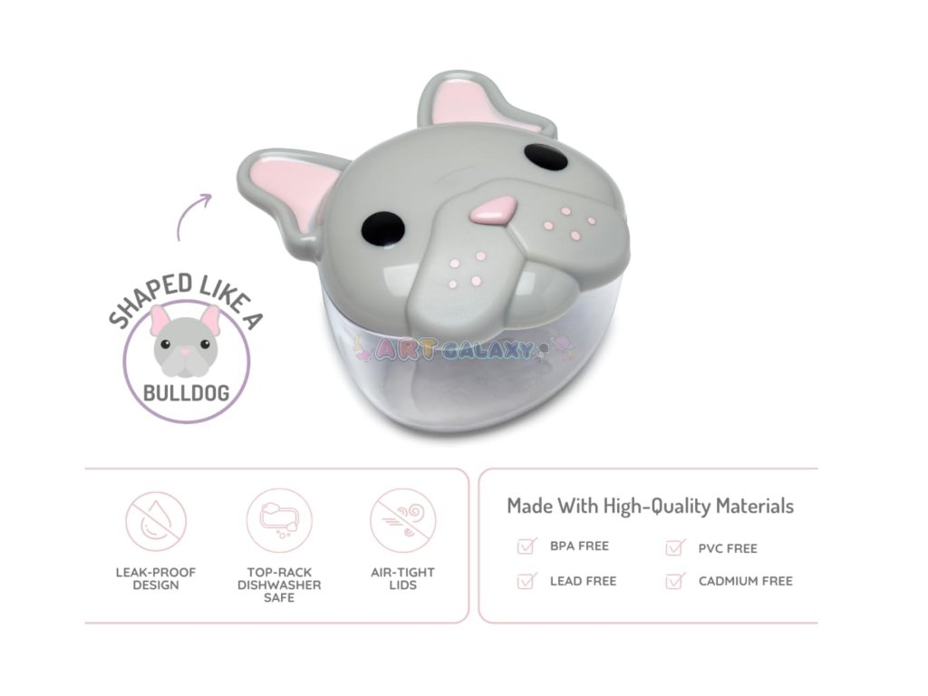 Roztomilá a praktická dóza Melii – Bulldog je ideální pro děti i dospělé, kteří chtějí mít své oblíbené svačiny bezpečně uložené. Díky lehkému a odolnému materiálu je perfektním pomocníkem na doma, do školy i na cesty. Děti si ji snadno otevřou samy díky hravému designu víčka s motivem pejska. Průhledná spodní část navíc umožňuje rychlou kontrolu obsahu bez nutnosti otevírání.