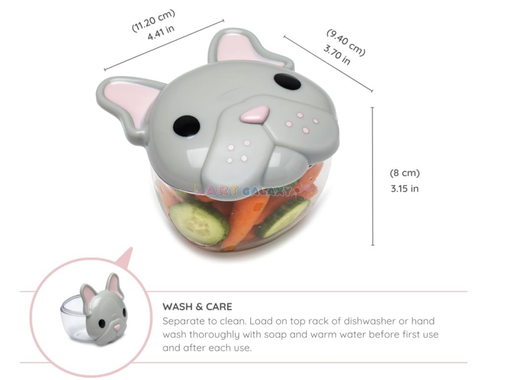 Hravá a funkční dóza Melii je skvělým společníkem pro děti i dospělé, kteří si chtějí uchovat své svačiny čerstvé a bezpečně uložené. Je vyrobena z lehkého, ale odolného materiálu, což z ní dělá ideální volbu na doma, do školy i na cesty. Roztomilý design víčka s motivem přidává na atraktivitě a zároveň usnadňuje otevírání i těm nejmenším. Díky vzduchotěsnému uzávěru zůstává obsah vždy čerstvý a bez rizika vytečení nebo rozsypání. Průhledná spodní část umožňuje snadný přehled o obsahu bez nutnosti dózu otevírat.