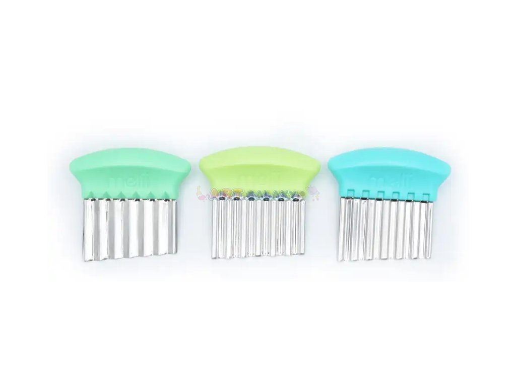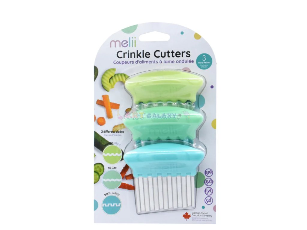 S kráječem kanadské značky Melii budou svačinky vašich dětí zábavnější a originálnější! Díky třem různým typům čepelí snadno připravíte vlnité hranolky, sendviče, saláty, sýry či sušenky a podpoříte u dětí zájem o jídlo.