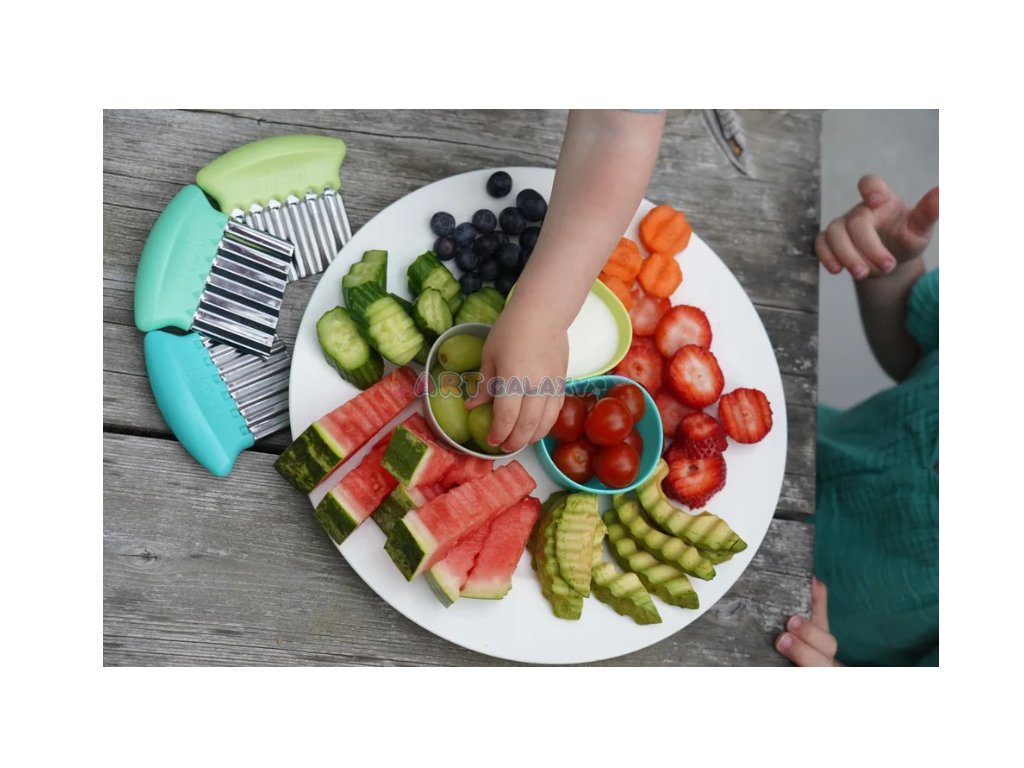 Tento praktický set nožů je ideální pro rodiče, kteří chtějí dětem připravit zdravé a kreativní svačiny. Různá textura krájení podporuje chuť k jídlu a pomáhá dětem snadněji manipulovat s potravinami.