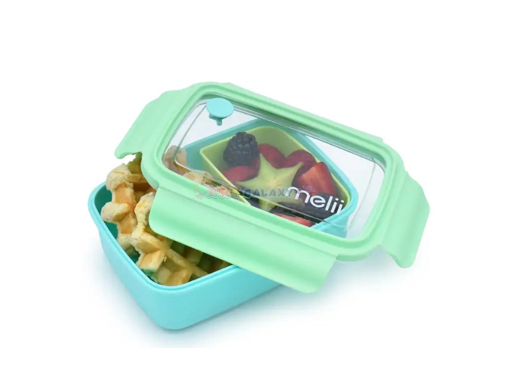 Melii Bento box je ideální pro svačiny i obědy, ať už do školy, do práce nebo na výlety. Víko má velkou pojistku pro snadné otevírání, což podporuje samostatnost dětí. Díky použitým bezpečným materiálům je box zdravotně nezávadný a lze jej mýt v myčce (horní koš) nebo skladovat v mrazničce.
