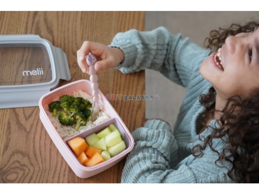 Melii Bento box je ideální pro svačiny i obědy, ať už do školy, do práce nebo na výlety. Víko má velkou pojistku pro snadné otevírání, což podporuje samostatnost dětí. Díky použitým bezpečným materiálům je box zdravotně nezávadný a lze jej mýt v myčce (horní koš) nebo skladovat v mrazničce.