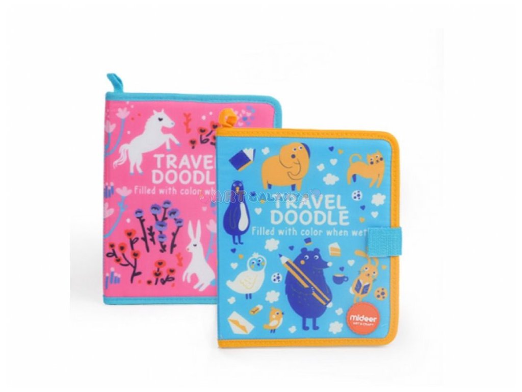 Kreativní sada s vodním malováním. Bílé stránky deníku se po dotyku s vodou (přiložené vodní pero) obarví. Kouzelné omalovánky nejen an cesty, ale i na doma nebo třeba čekání u lékaře.