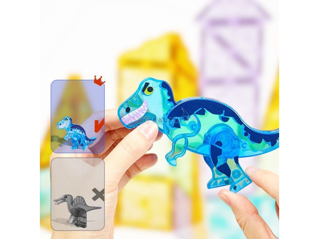 Barevná magnetická stavebnice s motivem dinosauřího života.