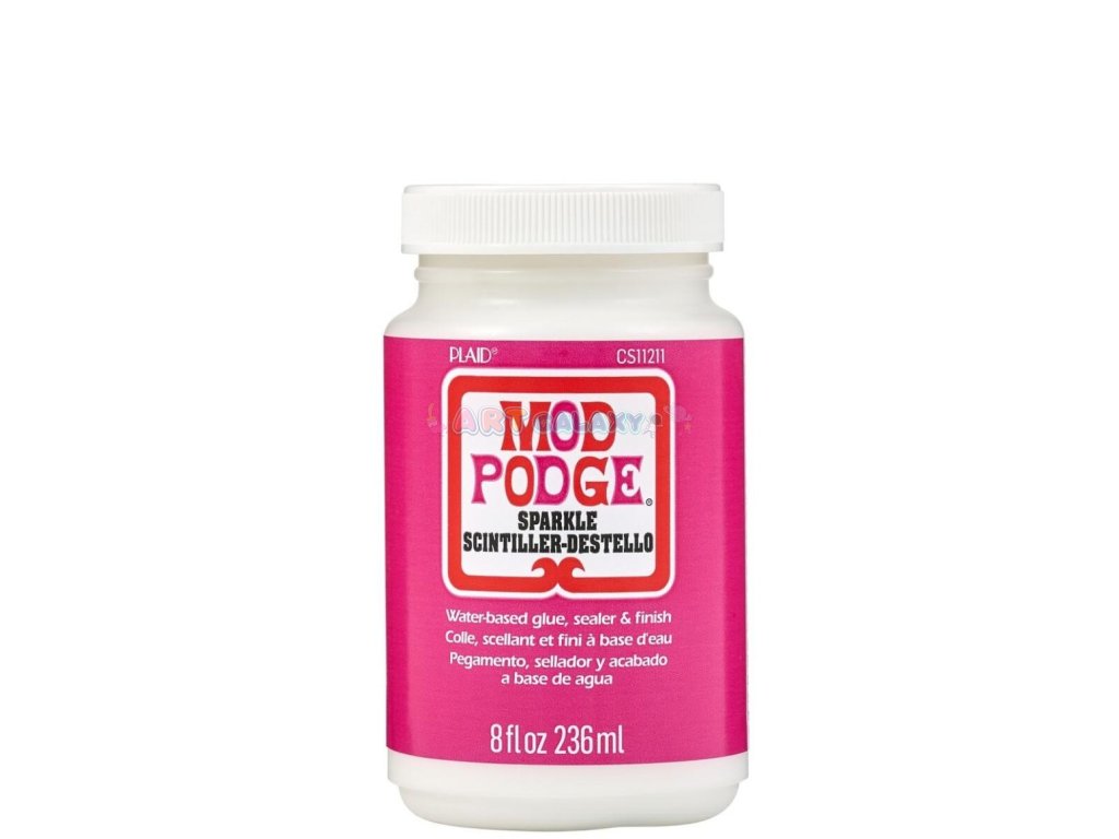 Mod Podge Sparkle je rychleschnoucí lepidlo, lak a finiš, který zanechává hladký, třpytivý lesklý povrch. Toto všestranné lepidlo je ideální pro decoupage na papír, dřevo, látku, plast, plátno a další povrchy.