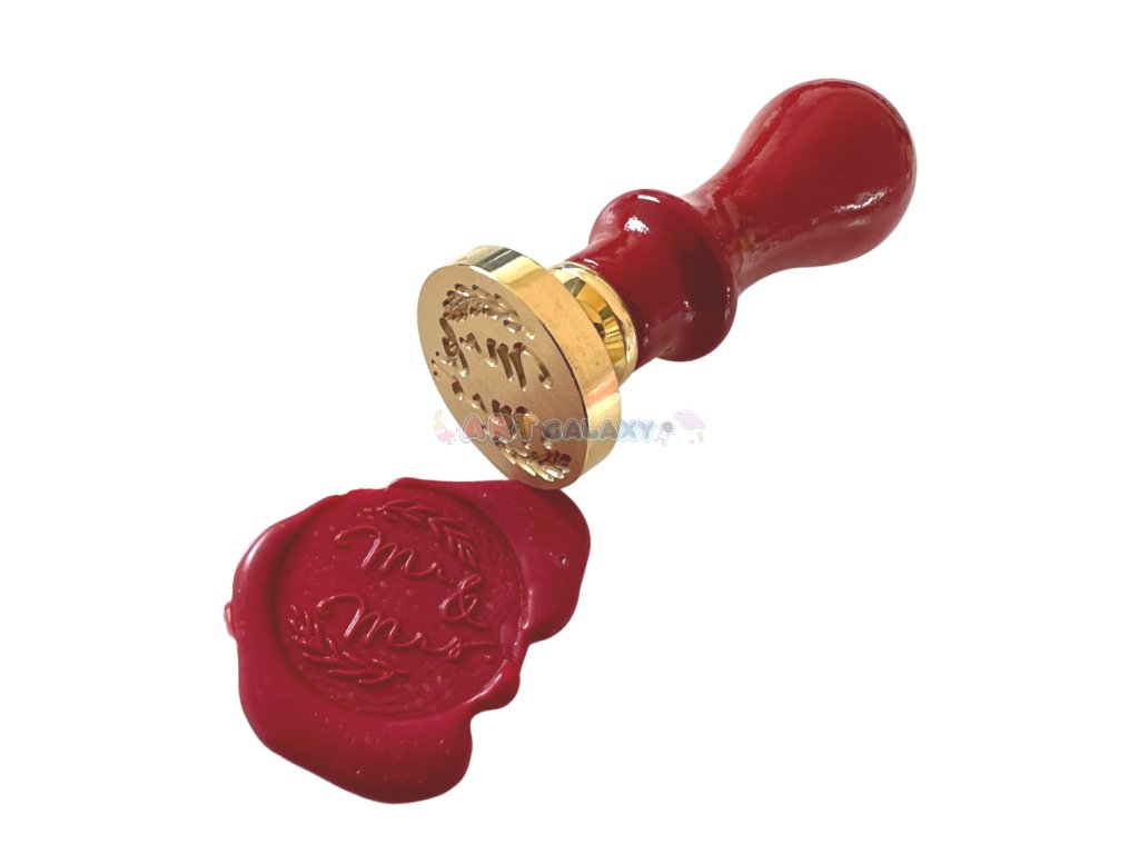 Pečetidlo s nápisem Mr and Mrs je ideální pro svatební dekorování, zdobení obálek, pozvánek, přání, jmenovek a další zdobení. Svatební pečeť navodí slavnostní atmosféru v tomto významném životním kroku! Objevujte kouzlo pečetění a vraťte se s námi zpět do minulosti, kdy každé psaní bylo zdobeno touto elegantní technikou. Pečetidlo má mosaznou hlavu s vyraženým motivem a je doplněno dřevěnou rukojetí v různých barevných variantách.