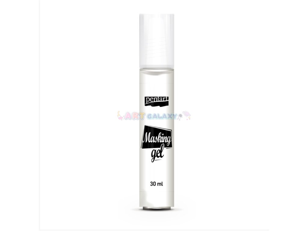 Maskovací gel (masking gel) značky Pentart vytváří speciální gelový ochranný povrch, který nepropustí barvy. Po jeho nanesení a zaschnutí se vytvoří na Vašem díle gumový ochranný film, přes který můžete nanášet barvy. Místa pokrytá zaschlým gelem je možné přetřít barvou, aniž by se dostala na místo, které je zakryto. Po zaschnutí barev se gel jednoduše odstraní sloupnutím. Použití gelu je díky aplikátoru jednoduché a gel je možné použít na veškeré povrchy.