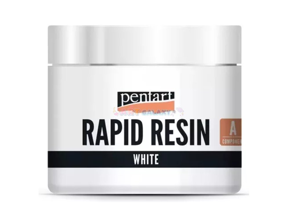 Pentart Rapid Resin je vysoce kvalitní epoxidová pryskyřice, která se vyznačuje snadnou manipulací a rychlým vytvrzením. Tento set obsahuje dva komponenty, které je třeba smíchat v poměru 1:1, což zajišťuje optimální výsledky. Bílá barva pryskyřice ji činí ideální pro vytváření elegantních a moderních dekorací, jako jsou šperky, ozdoby a další umělecké projekty.
