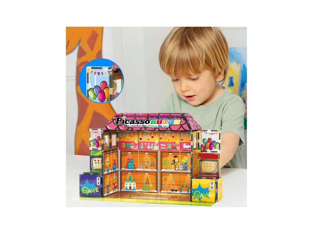Vstupte do světa plného barev a stavební zábavy s 60dílnou magnetickou stavebnicí PICASSOTILES® ve stylu hračkářství.