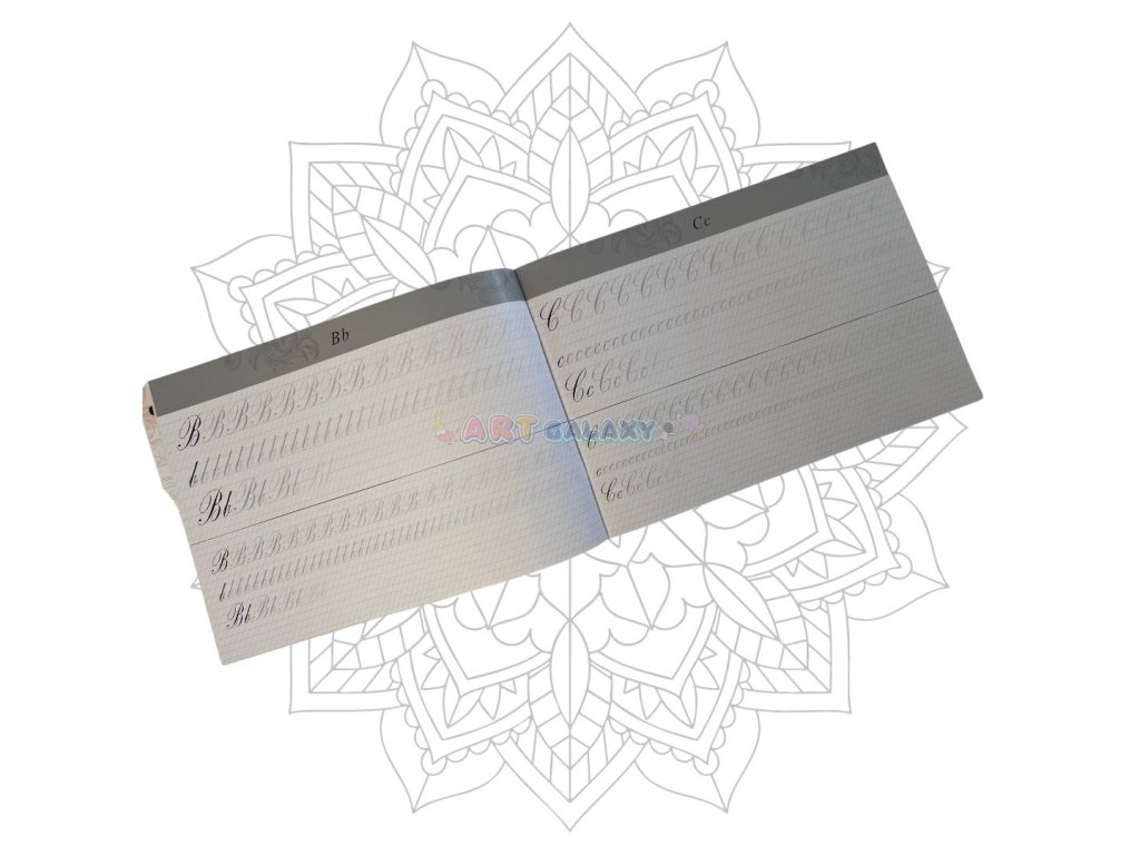 - sešit obsahuje: základní písmo pro kaligrafii, abeceda ve dvou velikostech, předtištěná písmena k procvičování, návody na psaní včetně nácviku základních tahů