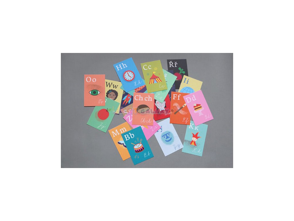 Krabička obsahuje: 34 barevných kartiček s kompletní českou abecedou od A do Ž.