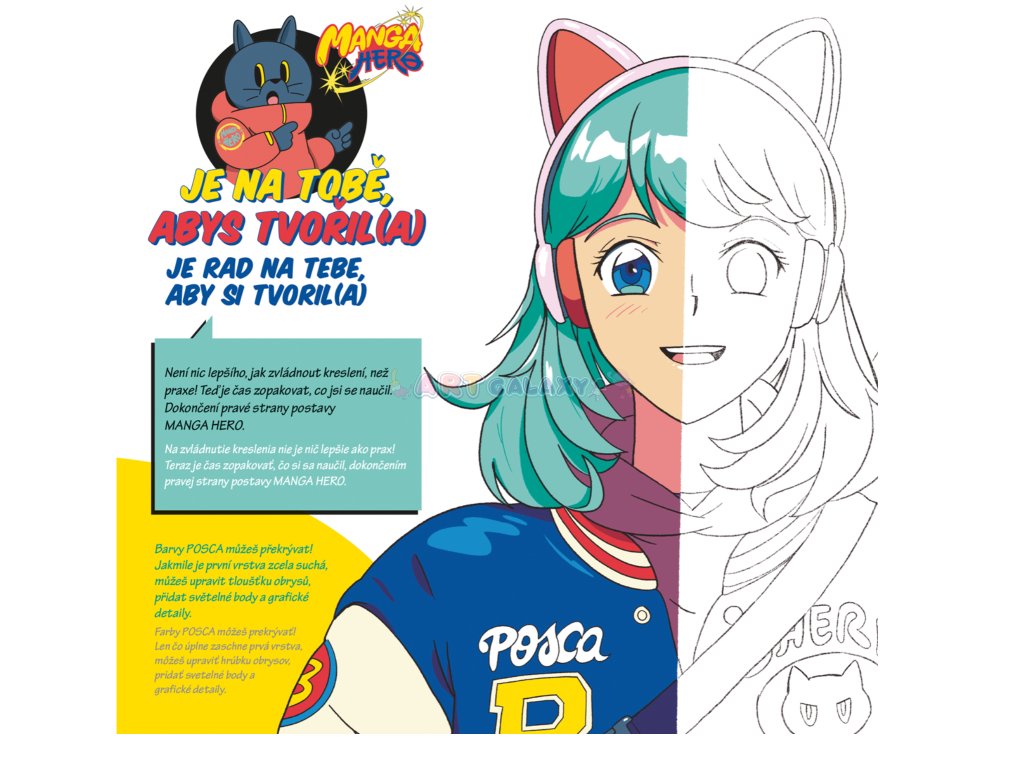 Sada POSCA Manga Hero nabízí vše, co začínající i pokročilí kreslíři potřebují k tvorbě manga postav a komiksových scén. Různé typy hrotů umožňují kreslit kontury, vybarvovat plochy i doplňovat jemné detaily.