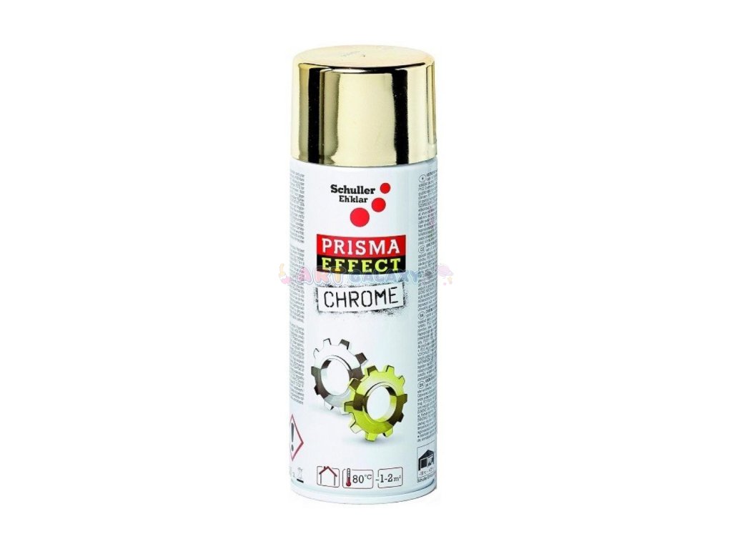 Prisma Color značky Schuller je vysoce lesklý sprej s chromovým efektem, který po nastříkání vypadá jako vyleštěné zlato nebo stříbro. Barva je rychleschnoucí s dobrou krycí schopností, je vhodná pro vnitřní použití na většinu povrchů. Je použitelná jak pro kutily, tak i profesionály. Barva má automatický samočistící ventil, je vhodná na tyto povrchy: kov, dřevo, sklo, kámen, papír, různé druhy plastů, není určena na polystyren. Barva nebledne a je odolná poškrábání a povětrnostním vlivům. Při práci se spreji používejte ochranných prostředků - rukavice a masku. Baleno ve spreji v kovovém obalu s plastovým víčkem s pojistkou.