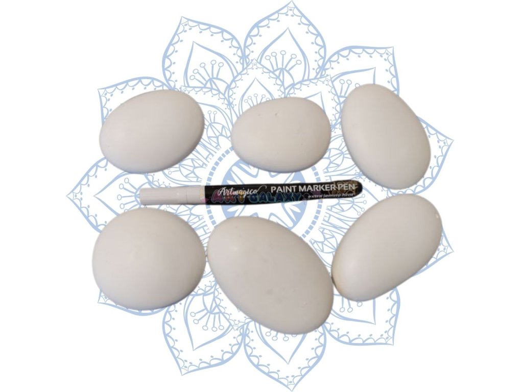 Profesionální silikonová forma ve tvaru 6 přírodních kamínků je vhodná na odlitky z pryskyřice, mýdla, odlévání sádry či betonu. Vzniknou hladké, lesklé a dokonale tvarované odlitky kamenů. Při odlévání pryskyřicí můžete použít sušené květy, při použití se sádrou či betonem je možné hotové kameny dotvořit např. akrylovou barvou či akrylovými fixy, tečkováním apod. Ideální pro tvoření dárků.