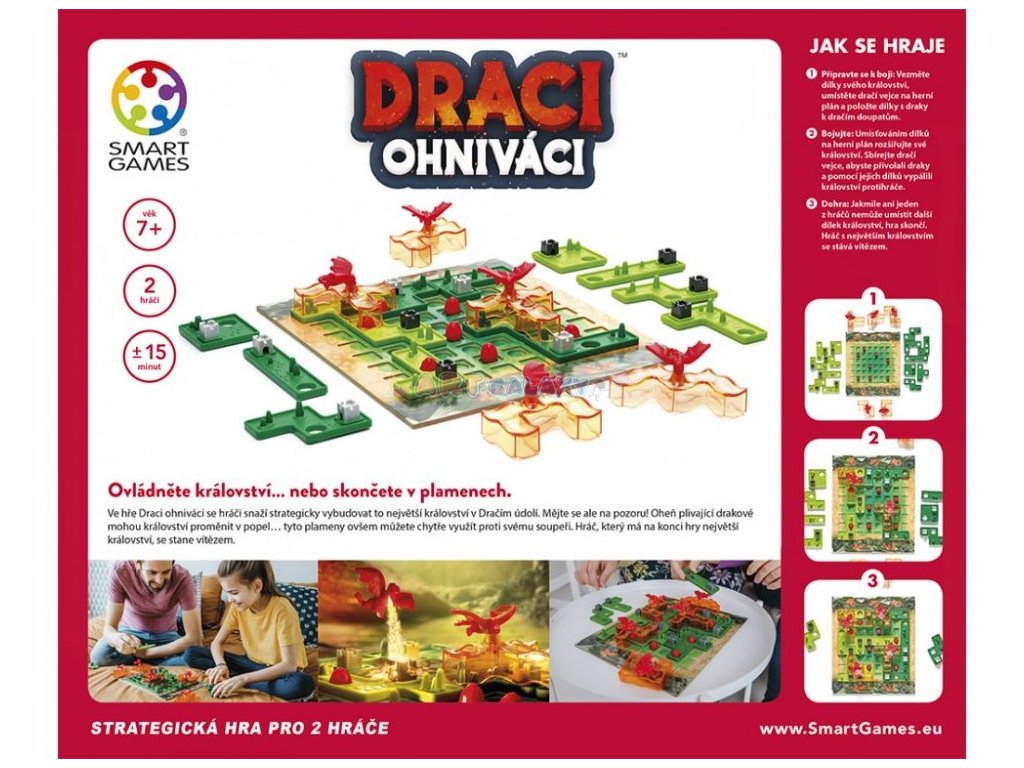 Tyto plameny ovšem můžete chytře využít proti svému soupeři. Hráč, který má na konci hry největší království, se stane vítězem. Tato logická hra je určena pro 2 hráče od 7 let prověří vaše strategické schopnosti.