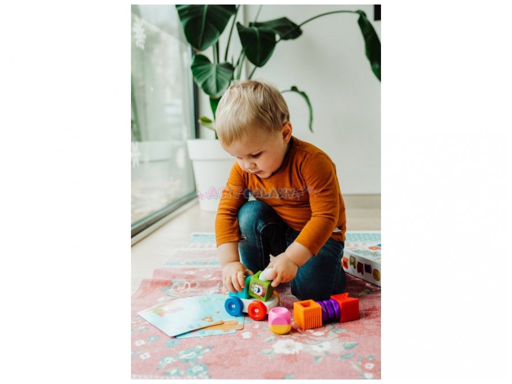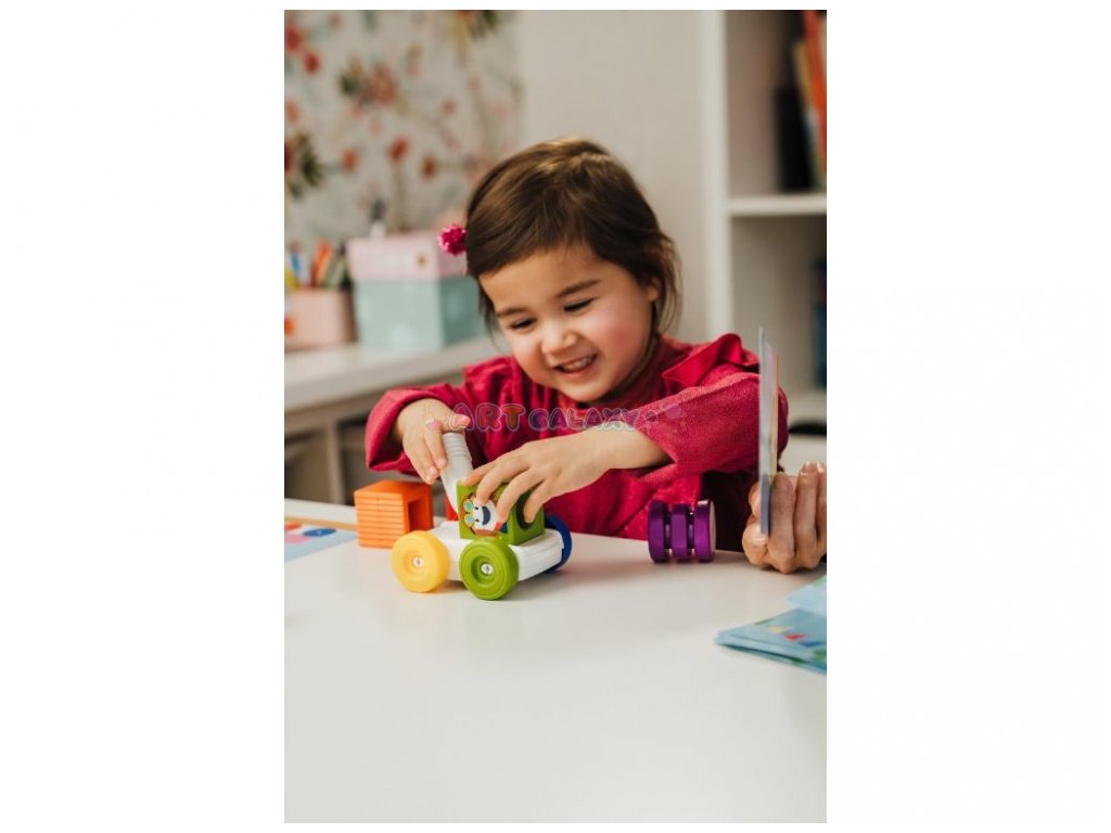 Starší děti pak mohou řešit různé logické výzvy. K dispozici mají 24 šablon s předlohami. Zkuste sestavit vozidlo obráceně a vyřešit složitější stavební úkoly. Při řešení těchto úkolů se děti zábavnou formou učí chápat, kde je nahoře, dole, vlevo a vpravo.