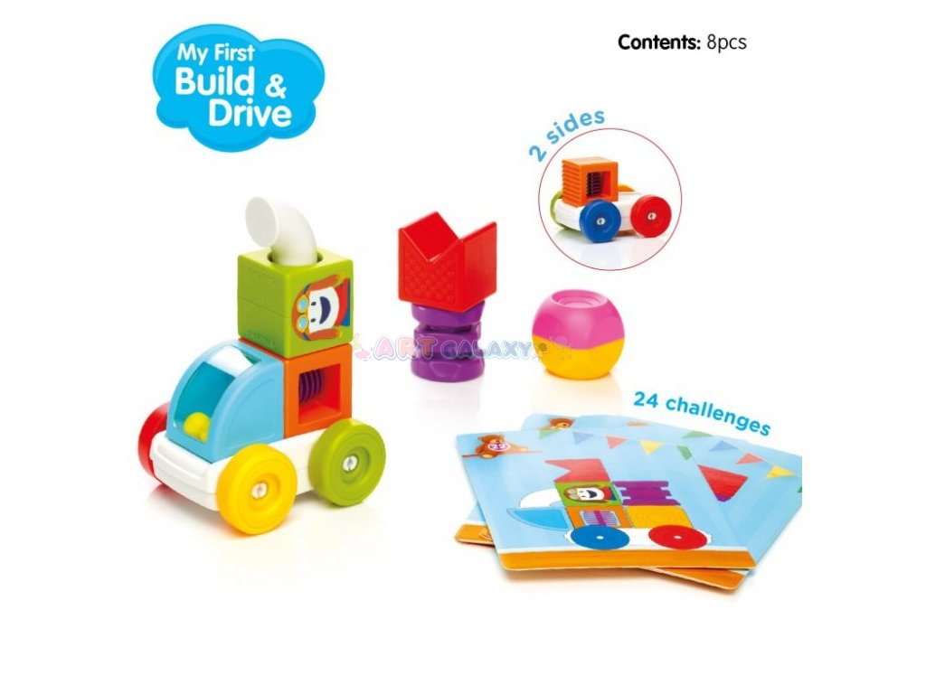 Obsah balení: 1 vozidlo, 2 stavební základny, 7 magnetických bloků, 12 oboustranných karet s úkoly.