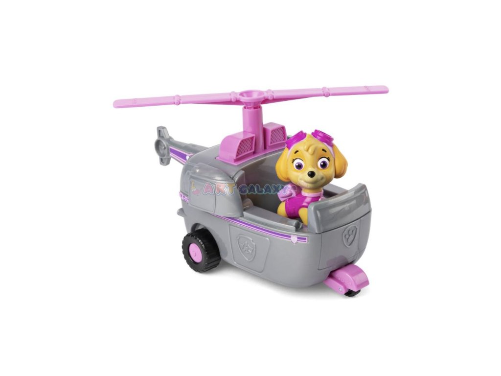 Tlapková Patrola je připravena na akci s vrtulníkem Skye! Přidejte se k Skye, oblíbené psí letkyni, a vyrazte na dobrodružné záchranné mise s jejím detailně zpracovaným vrtulníkem. Umístěte figurku Skye na sedadlo řidiče a využijte funkční podvozek a otáčející se vrtule pro realistické hraní. Když nastanou potíže, Skye je vždy připravena pomoci!