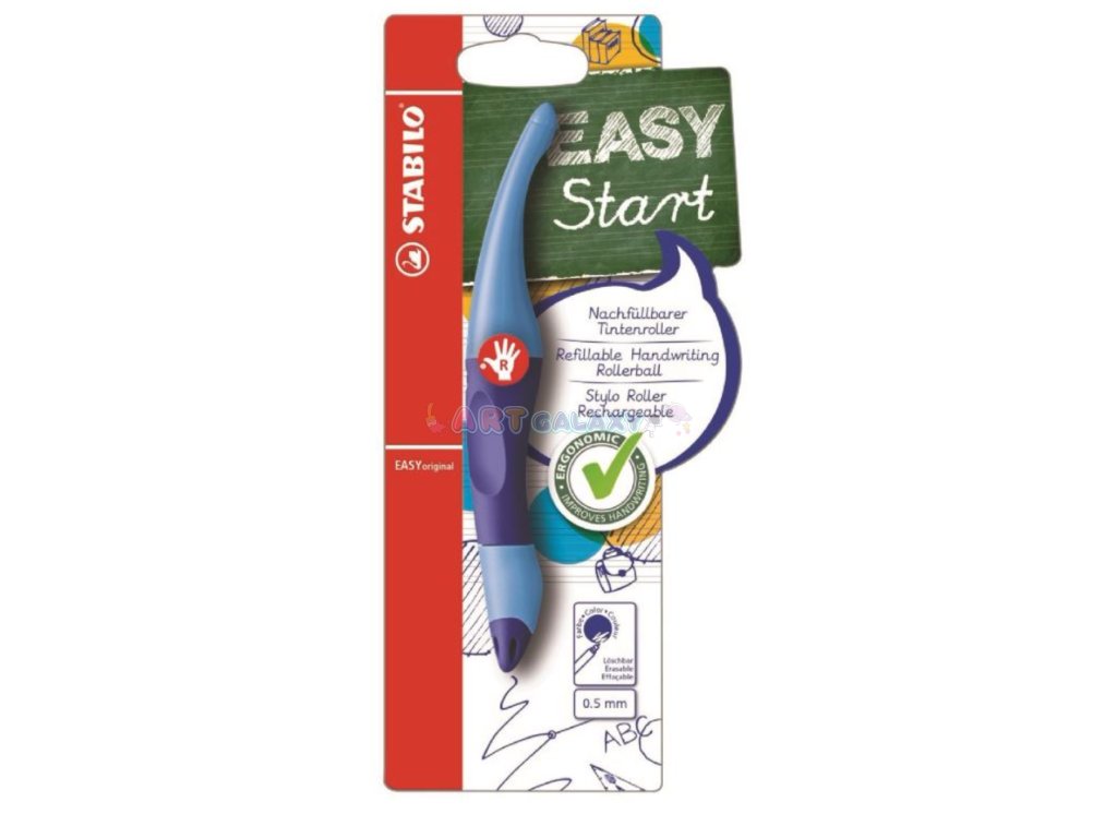 STABILO EASYoriginal je psací roller navržený speciálně pro děti, které se učí psát – tentokrát ve variantě pro praváky. Trojhranný tvar a pogumovaný úchop podporují správné držení pera a zabraňují únavě ruky. Modrý zmizíkovatelný inkoust je ideální pro školní použití – umožňuje opravy bez zbytečných škrtanců. Roller využívá výměnné náplně, přičemž každá obsahuje nový hrot pro perfektní tah po papíře. Elegantní modrá kombinace z něj dělá oblíbený psací nástroj i vzhledově.
