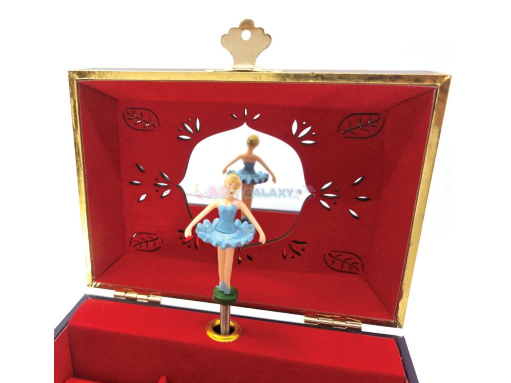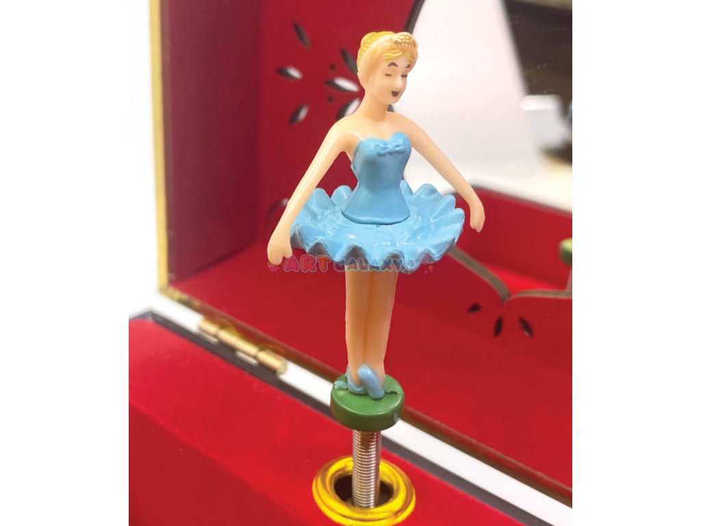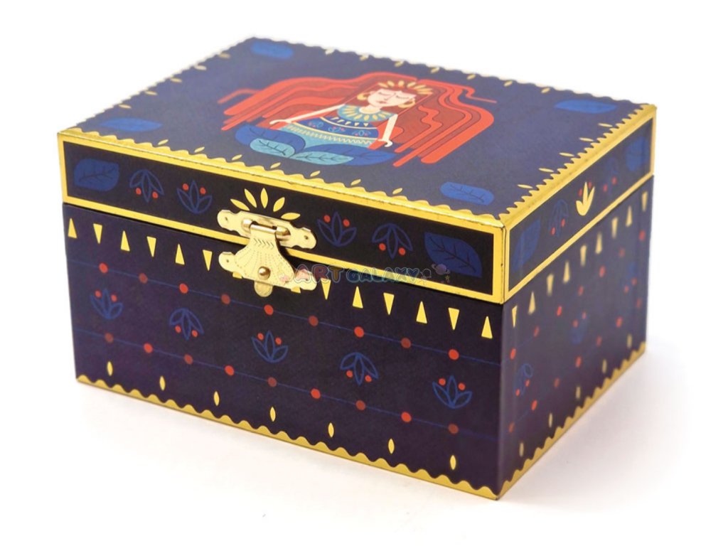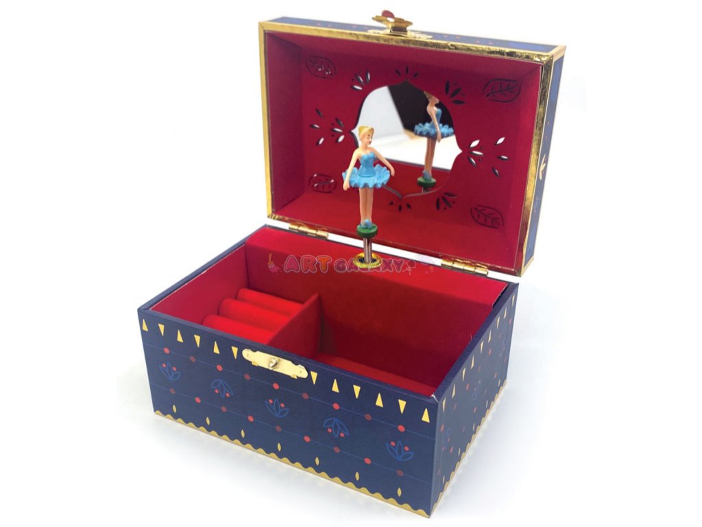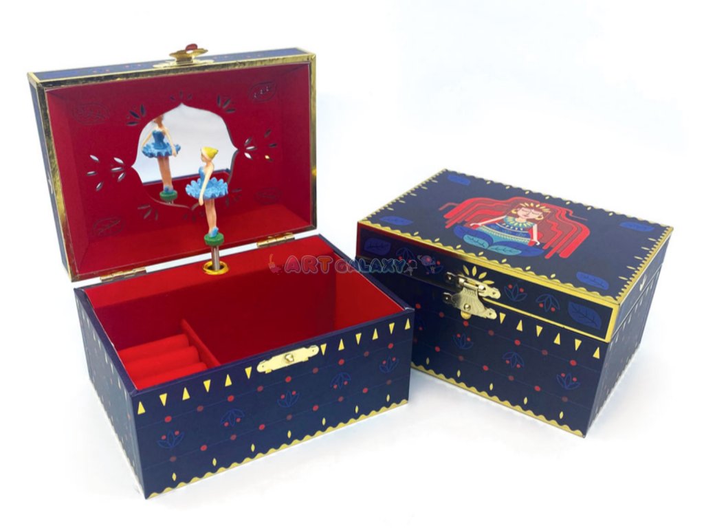 Hudební šperkovnice vašeho mládí, neuvěřitelně okouzlující kousek, který vás uchvátí! Natočte ji, otevřete a nechte se hudbou přenést do bájného světa! Šperkovnice s točící se baletkou uvnitř nabízí spoustu místa pro uložení vašich drahocenných pokladů. Inspirována řadou „Celestial“ je to krásná malovaná barevná krabička se zlatými detaily, která obsahuje široké zrcátko se složitým vzorem a držák na prsteny. K dispozici ve 2 provedeních: Vespera a Aurora.