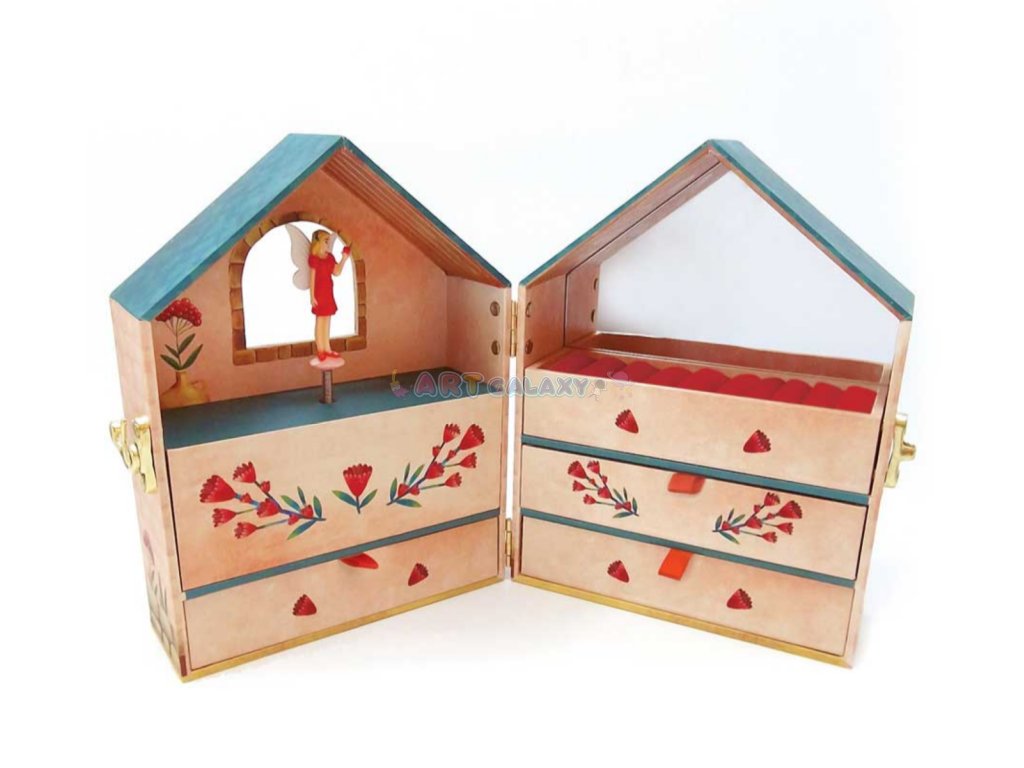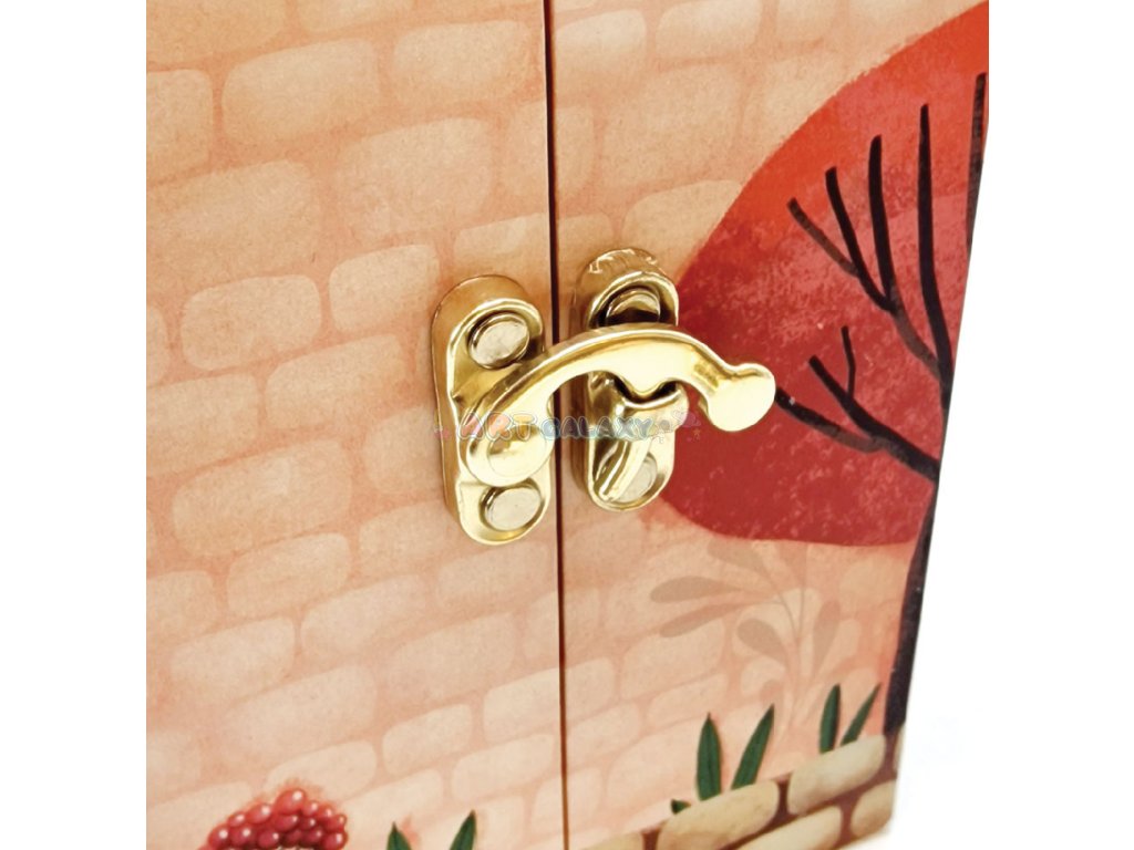 Hudební šperkovnice vašeho mládí, neuvěřitelně okouzlující kousek, který vás uchvátí! Natočte ji, otevřete a nechte se hudbou přenést do bájného světa! Šperkovnice s točící se baletkou uvnitř nabízí spoustu místa pro uložení vašich drahocenných pokladů. Inspirována řadou „Celestial“ je to krásná malovaná barevná krabička se zlatými detaily, která obsahuje široké zrcátko se složitým vzorem a držák na prsteny. K dispozici ve 2 provedeních: Vespera a Aurora.