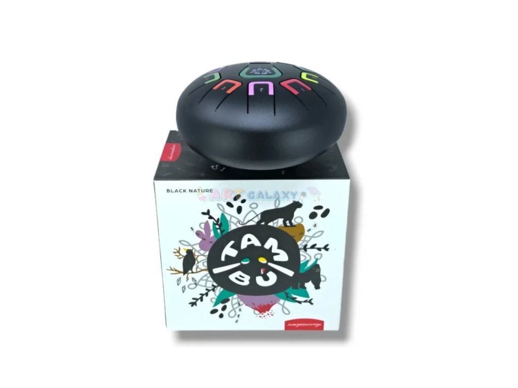 TAMBÚ je melodický kovový bubínek laděný v G dur, který okouzlí sametovým zvukem a barevným značením not. Perfektní pro děti i dospělé – bez předchozí zkušenosti s hudbou!
