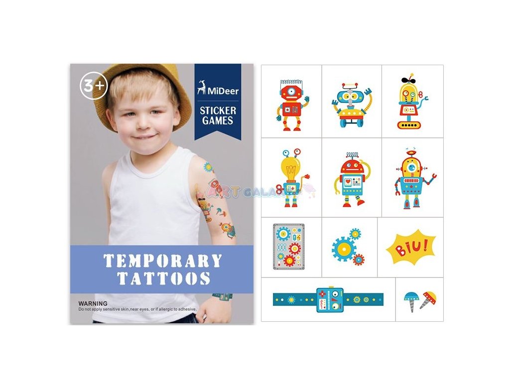 Set obsahuje celkem 12ks různých tetování různých velikostí s tématem roboti.