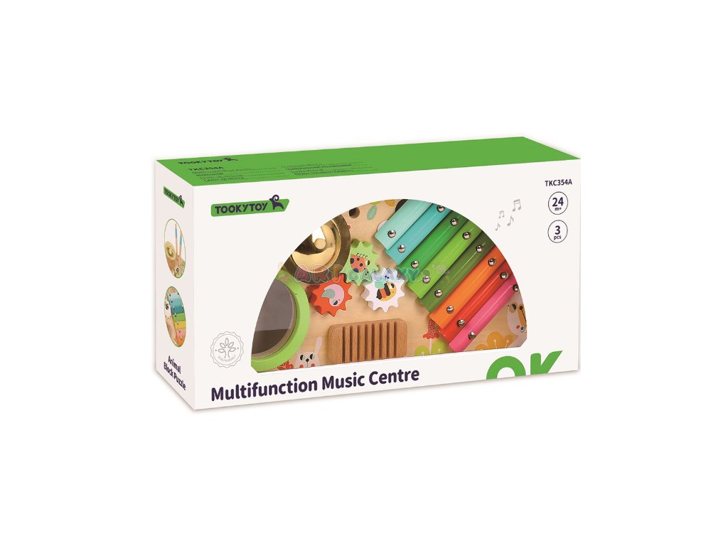 Objevte svět zvuků a rytmu s tímto krásně zpracovaným multifunkčním hudebním centrem od Tooky Toy! Děti si mohou zahrát na xylofon, bubínek nebo činely a zkoumat ozubená kolečka – to vše v jednom kompaktním a zábavném provedení. Rozvíjí hudební sluch, jemnou motoriku i koordinaci.