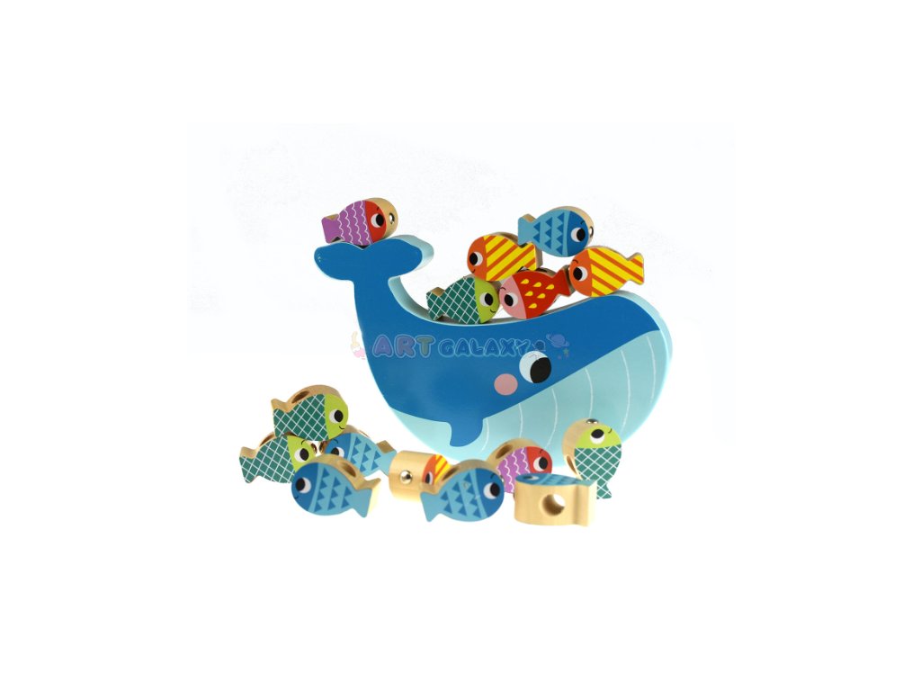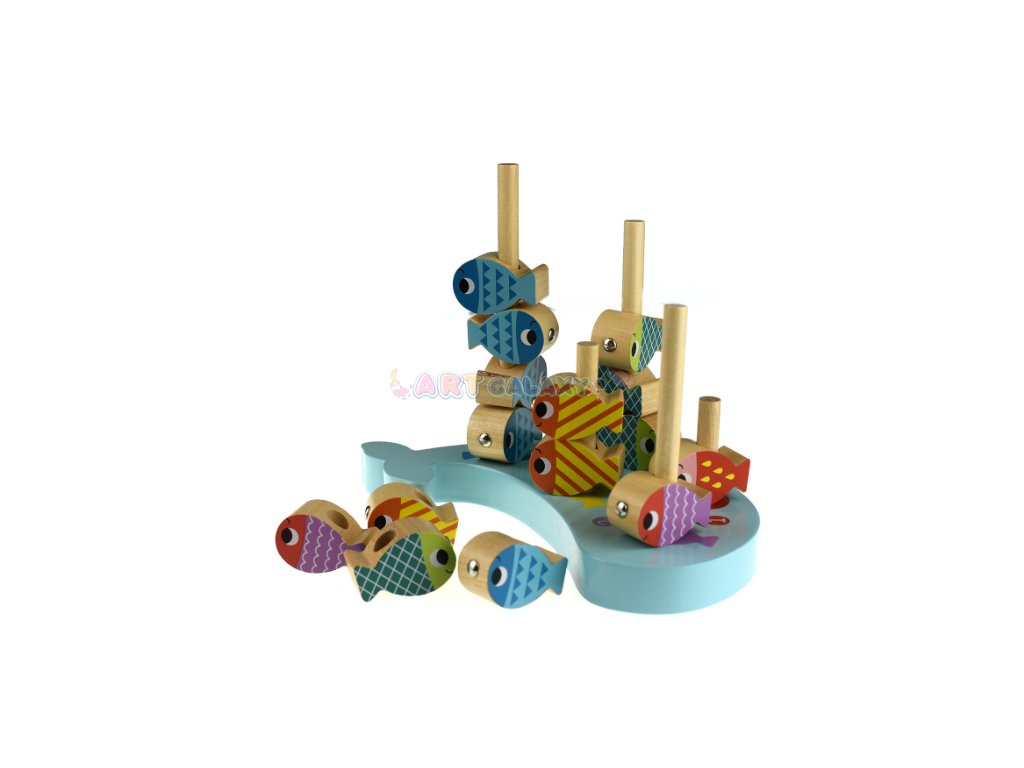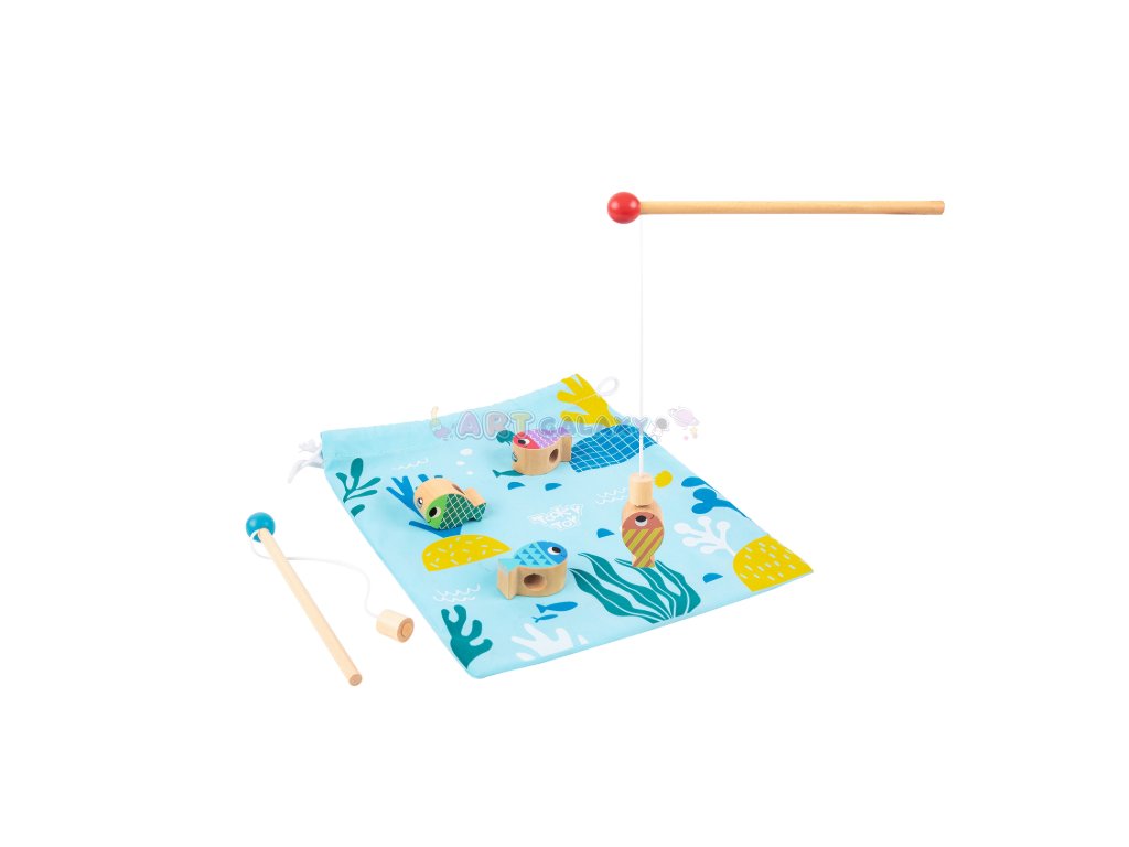 - Bohaté balení: 13 magnetických rybiček, 2 rybářské pruty, 4 stohovací tyče, dřevěná jehla, nit, látkový sáček a stohovací velryba