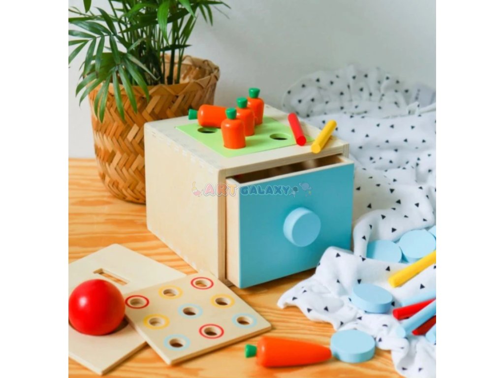 Montessori box od Tooky Toy je ideální vzdělávací pomůcka inspirovaná Montessori principy. Dítě si pomocí čtyř různých vík zkouší postupně náročnější aktivity, čímž se přirozeně rozvíjí jeho zručnost, koncentrace i schopnost logického uvažování.
