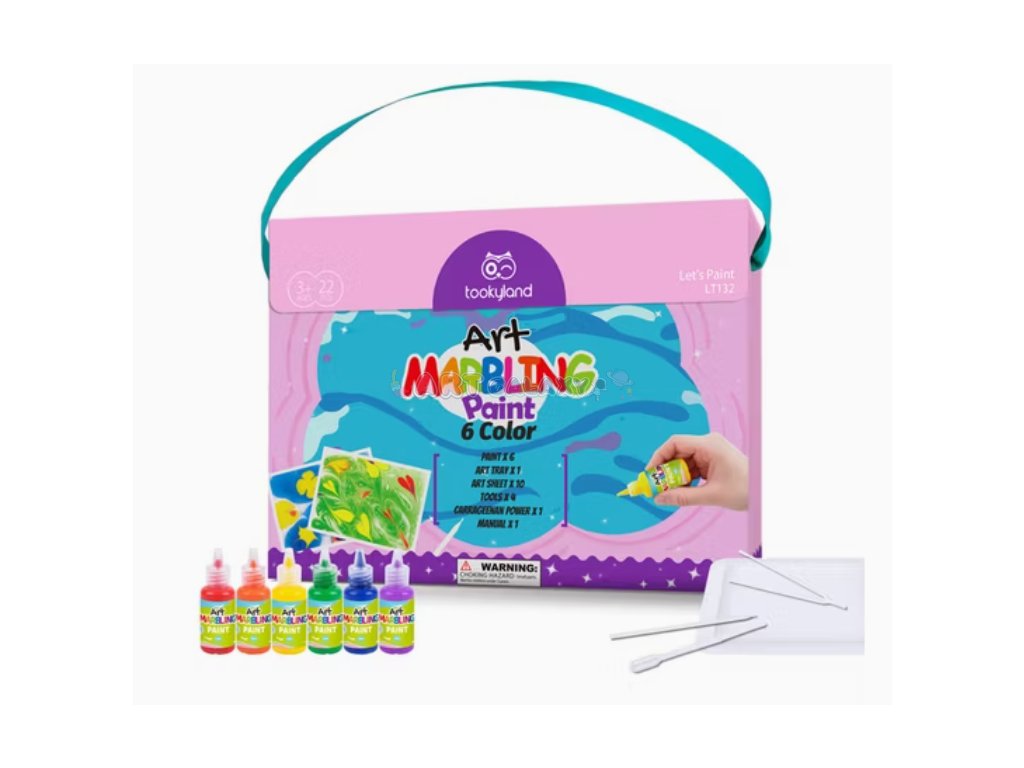 TookyLand – Sada na mramorování 6 barev: Umění mramorování pro malé kreativce!