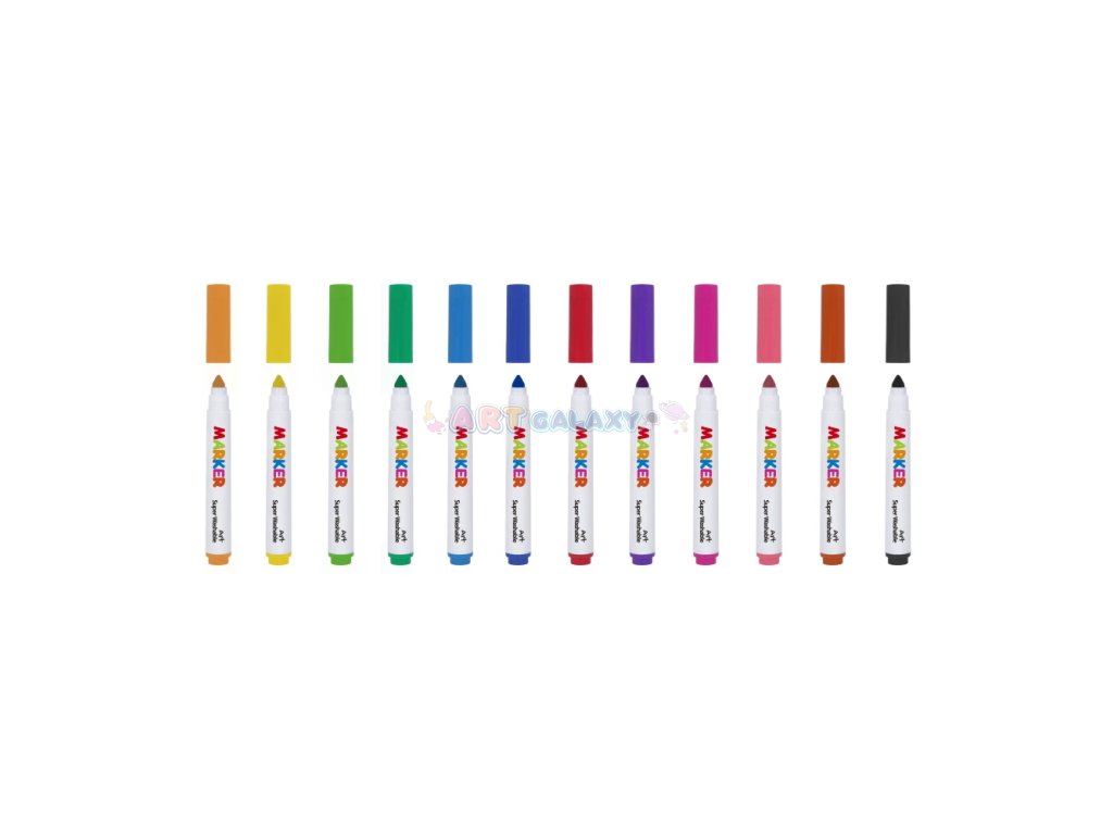 Smývatelné fixy pro děti od Tookyland mají 12 nádherných sytých barev a dětem se s nimi bude krásně kreslit. Hrot má kuželovitý tvar, díky kterému je možné kreslit tlusté i tenké čáry. Kreslení tak děti hned víc baví a motivuje je k další kreativní činnosti.