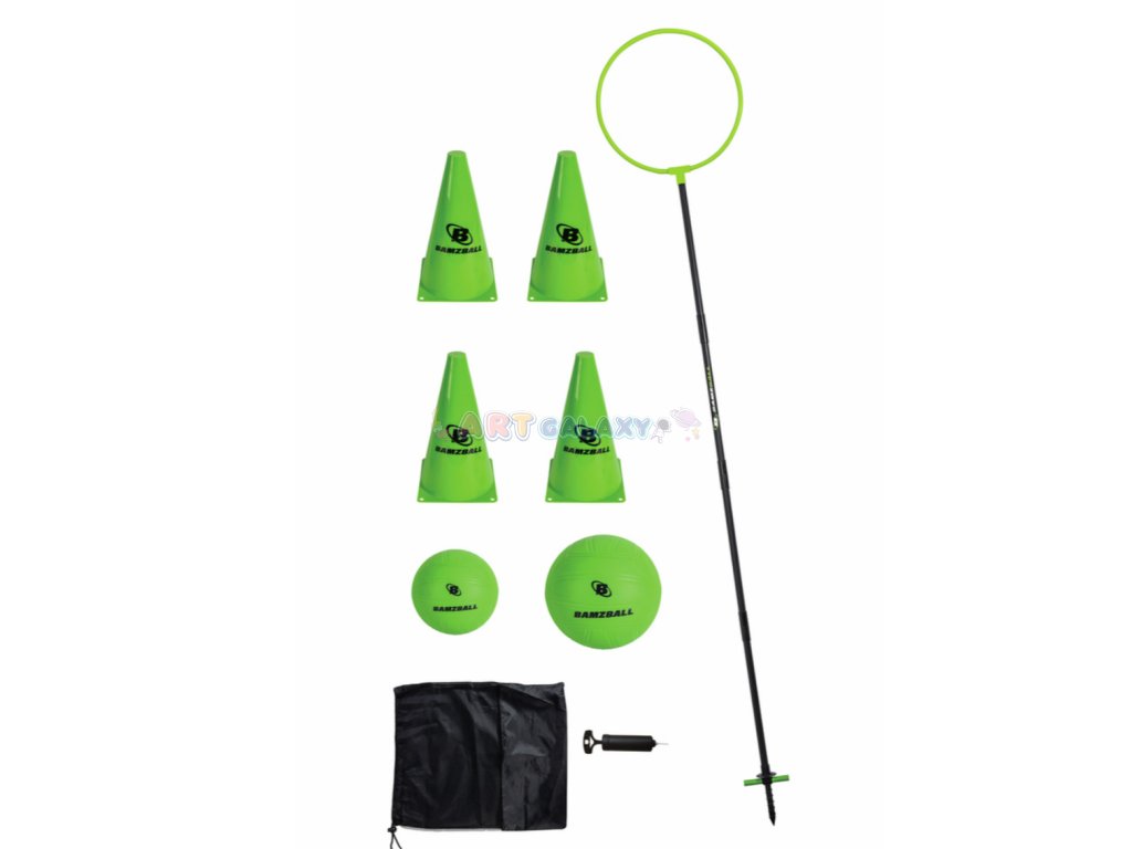 - Obsah balení: Nastavitelná odolná tyč, kruh, prémiová kotva do země, 2 nafukovací míče, 4 kužely, vzduchová pumpa a pravidla hry.
