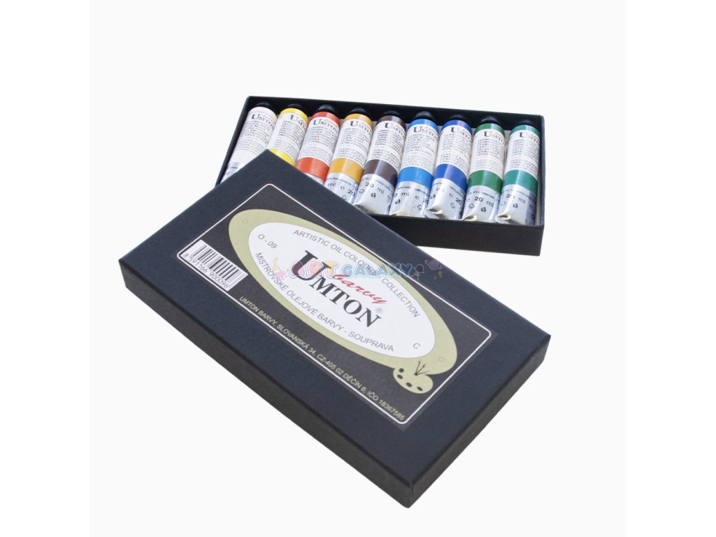 Olejové barvy české značky Umton v sadě po 9 ks v 20 ml tubách jsou kvalitní olejové barvy pro nadšené umělce a malíře, jenž se vzhlédli v olejomalbě. Tyto profesionální barvy Vám budou dělat radost svou konzistencí a kryvostí. S olejovými barvami Umton budete mít všechny potřebné nástroje pro vytváření krásných olejomaleb. Jejich kvalita a výkon jsou inspirací pro Vaši kreativitu a umělecké projekty. Barvy jsou baleny v papírové pevné krabičce a jsou v kovových tubách.