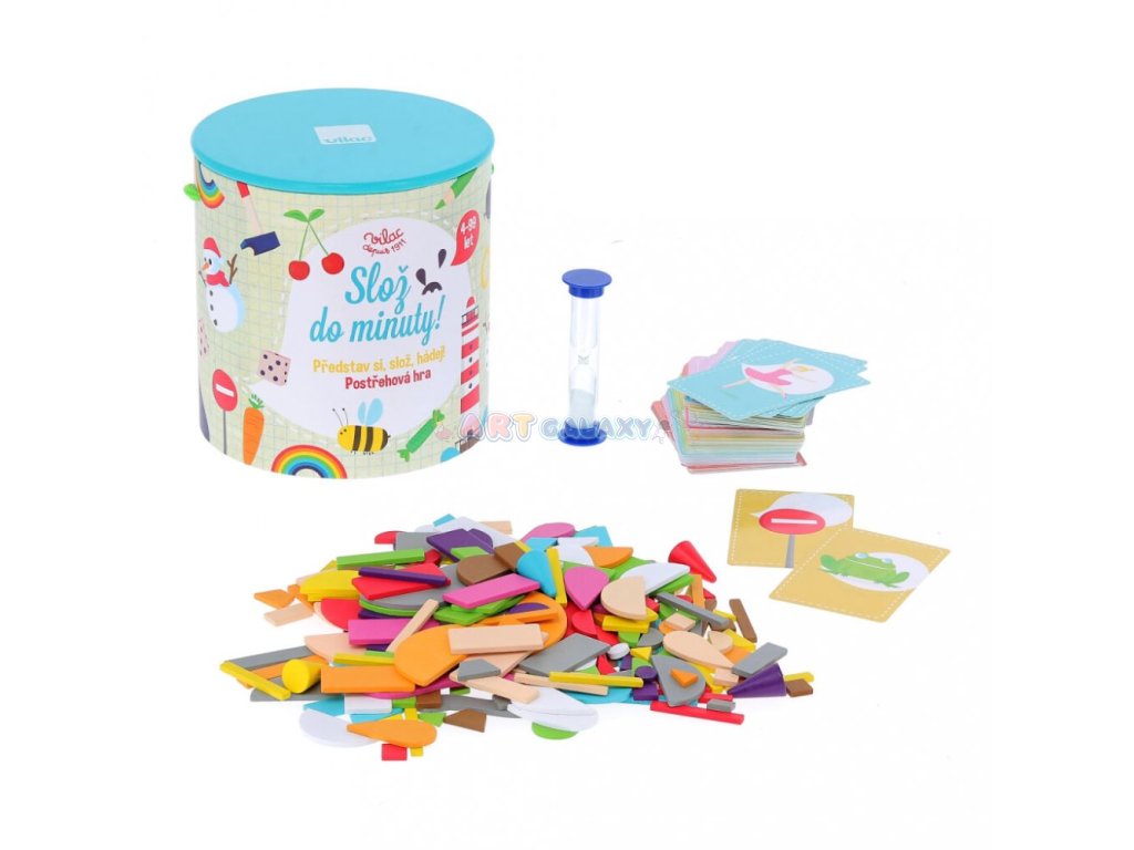 Zábavná hra, která rozvíjí dětskou představivost a postřeh. Vezměte si kartičku a z dostupných tvarů do minuty postavte obrázek. Hra pro všechny od 4 do 99 let. Podle věku hráčů můžete zvýšit čas pro řešení, nebo hrát bez časového limitu. Hra je spolu českým a slovenským návodem dodávána v praktickém kartónovém kyblíku opatřeném potiskem v češtině.