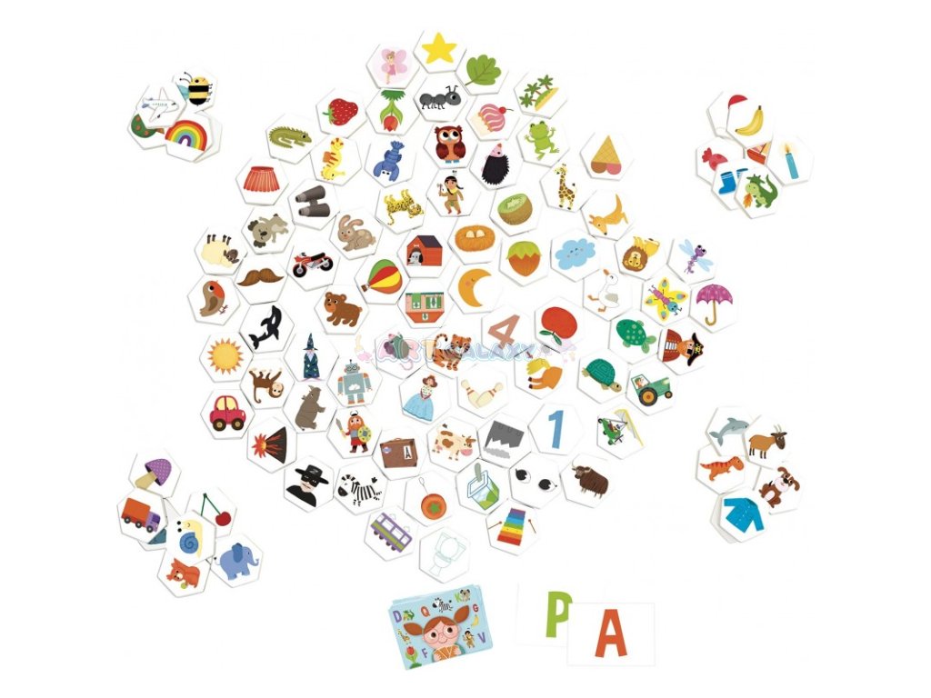 Společenská hra vhodná pro děti od 3 do 8 let. V balení najdete 100 dřevěných obrázků a k nim 26 obrázkových karet písmen. Najdi podle karty obrázek jako první, ale dej si pozor na ty záludné. Hra zaměřená na postřeh a rychlost, učí děti schopnosti soustředit se. Hra je určena pro 2 - 5 hráčů.