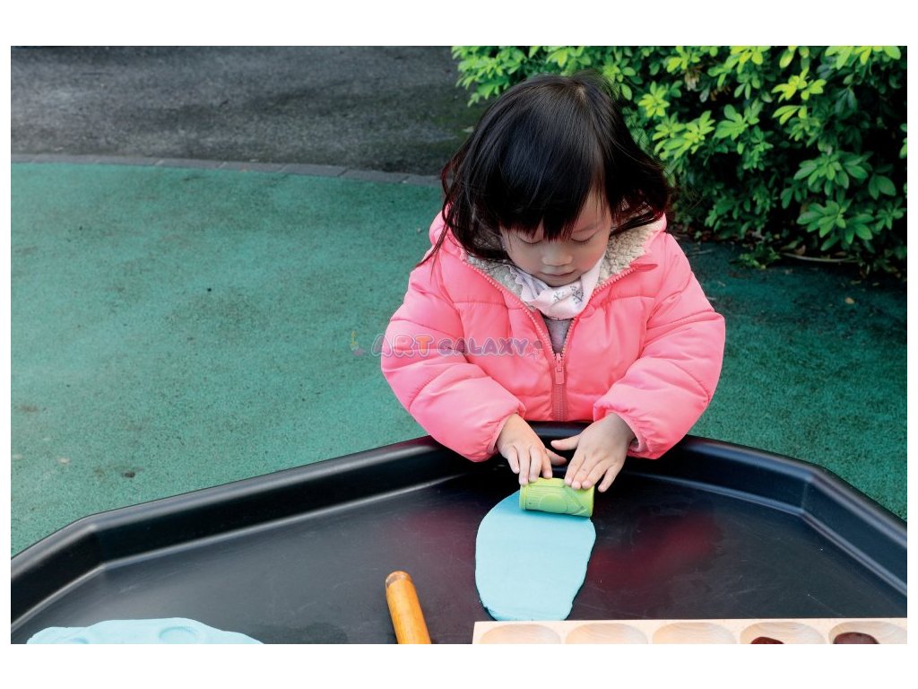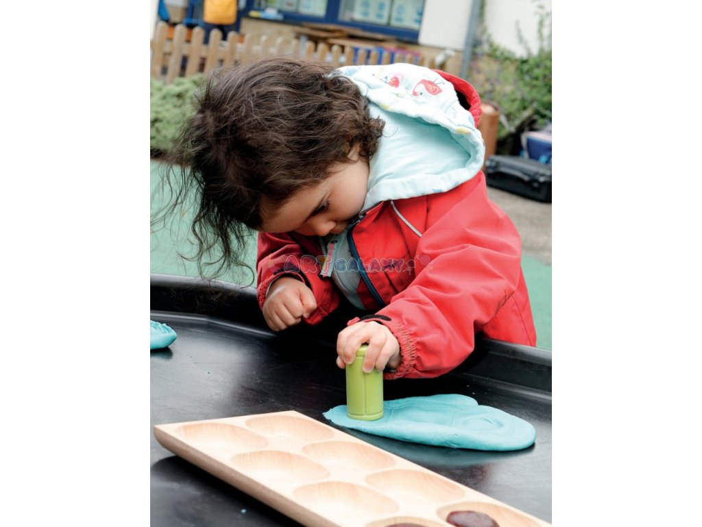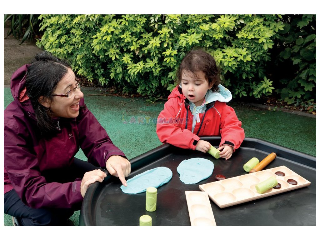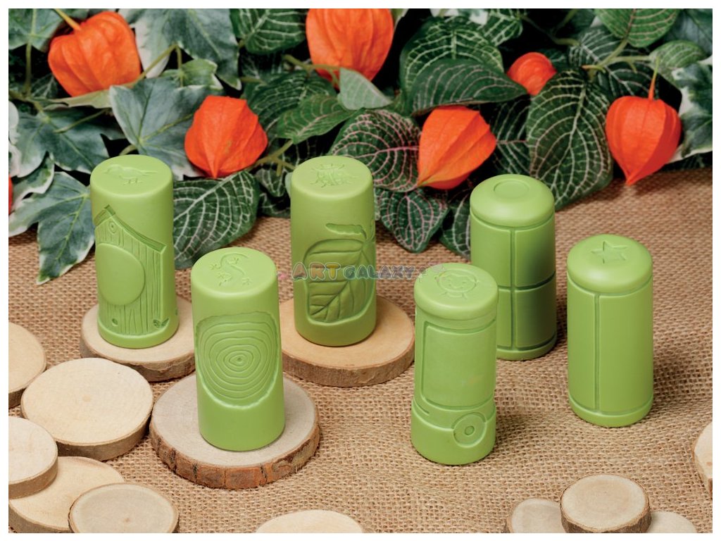 Při kutálení a razítkování budou děti podněcovány ke kladení otázek a rozšiřování své matematické slovní zásoby. Sada obsahuje šest univerzálních vzorů: dvě tradiční číselné mřížky; dva svislé rámečky: fazolový stonek a stupínky; a dva vodorovné rámečky: ptačí budky a vlakové vagóny.